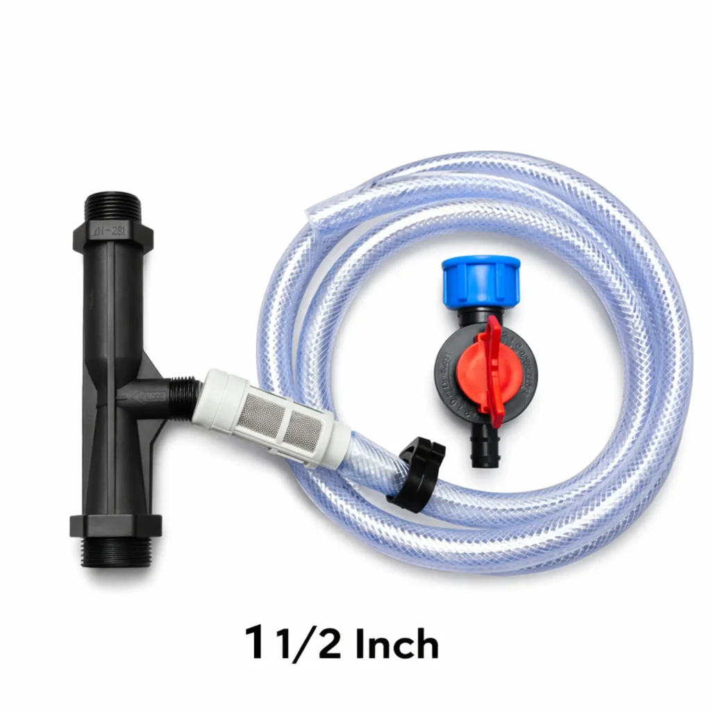 ونتوری تزریق کود ۱/۵ اینچ یکی از تجهیزات مهم در سیستمهای آبیاری تحت فشار است که برای تزریق کود مایع، اسید و مواد مغذی به داخل آب آبیاری استفاده میشود. این دستگاه با استفاده از اختلاف فشار ایجاد شده در مسیر جریان آب، بدون نیاز به برق یا پمپ جداگانه، کود را مکش و وارد سیستم میکند.