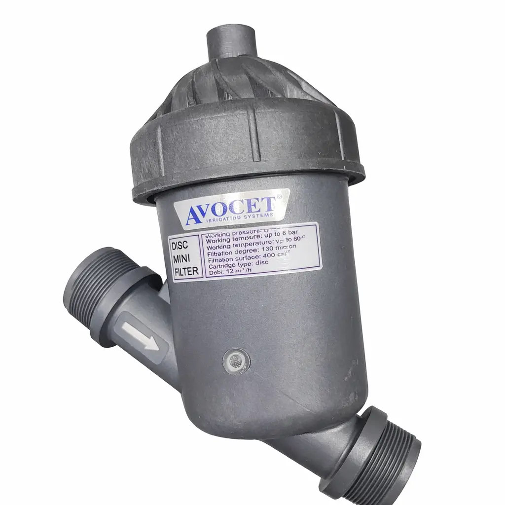 مینی فیلتر دیسکی 2 اینچ گزینهای ایدهآل برای استفاده در سیستمهای آبیاری قطرهای، بارانی و مهپاش در باغات، مزارع، گلخانهها و فضای سبز است.
